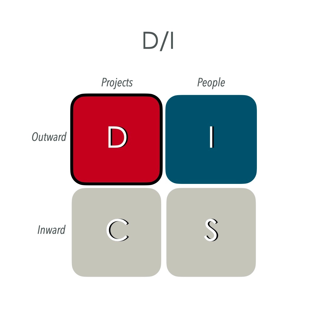 Primary D / Secondary I people (read: red / blue) are driven AND inspiring. They know how to get things done (they focus on projects), and they work well with people.