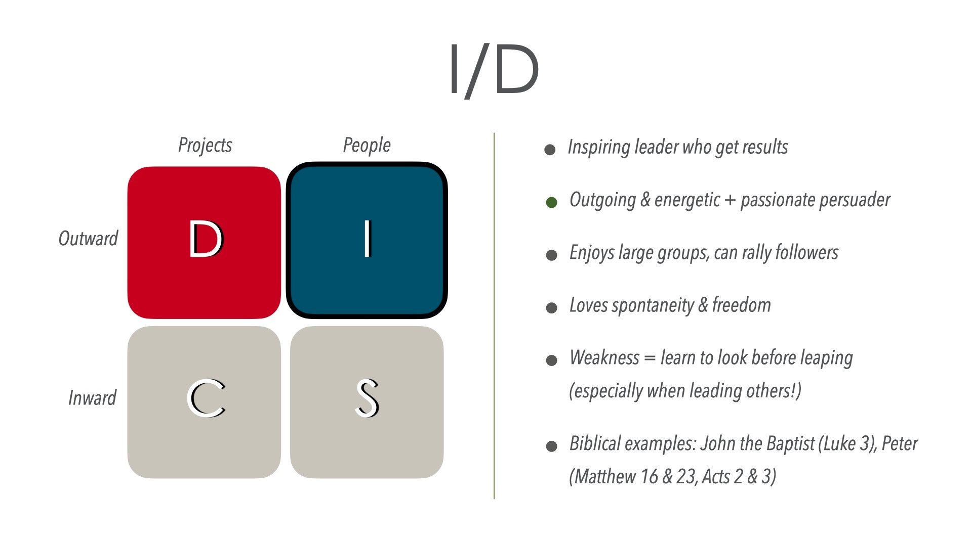 ID (blue / red) are persuaders who are outgoing and energetic. They enjoy large groups, primarily, and readily use their influence to get results by leveraging their influence to encourage people to follow their lead.