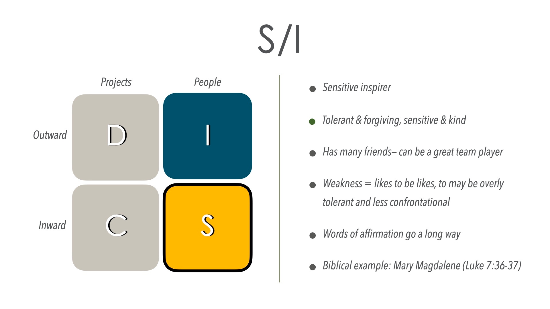 S/I = Sensitive + Inspiring